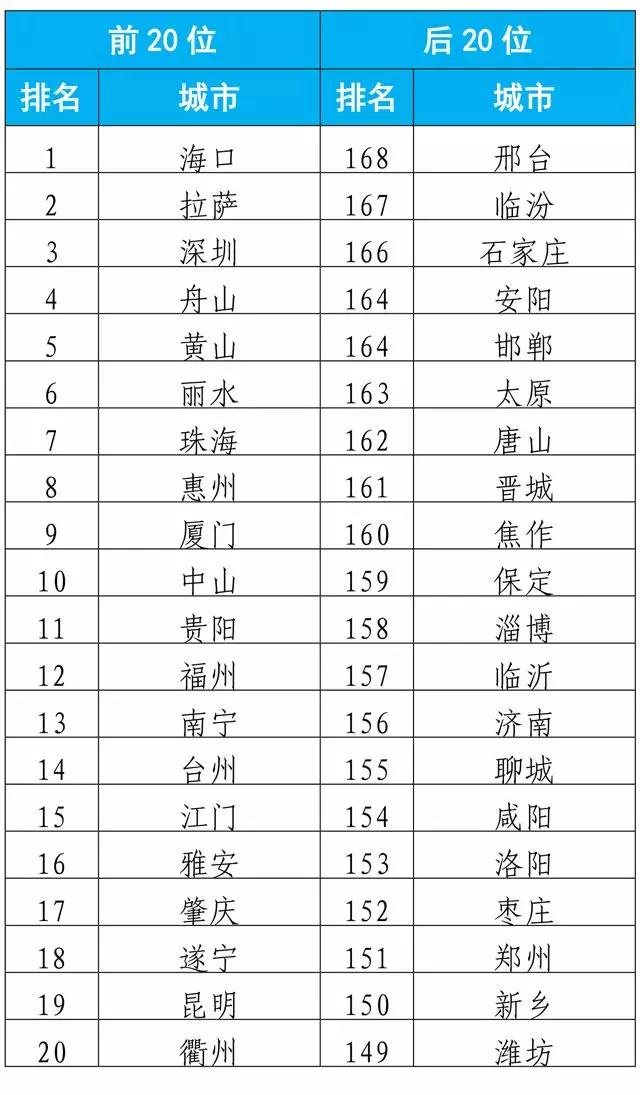 2019年1-7月168個(gè)重點(diǎn)城市排名